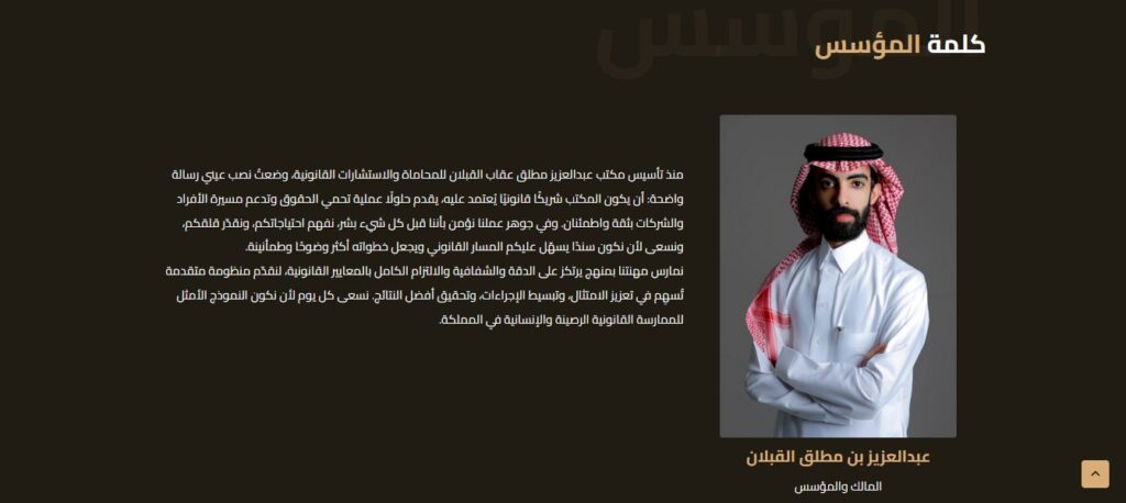 يُعد مكتب عبدالعزيز مطلق عقاب القبلان للمحاماة والاستشارات القانونية من المكاتب القانونية الرائدة في الرياض، حيث يقدّم خدمات قانونية متكاملة للأفراد والشركات وفق أعلى معايير النزاهة والاحترافية.